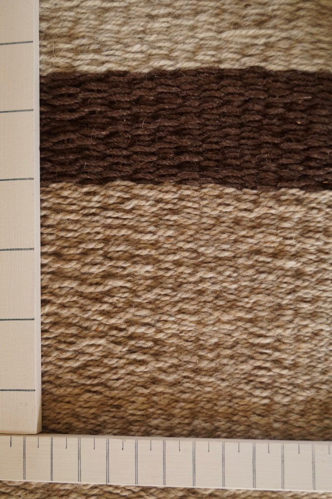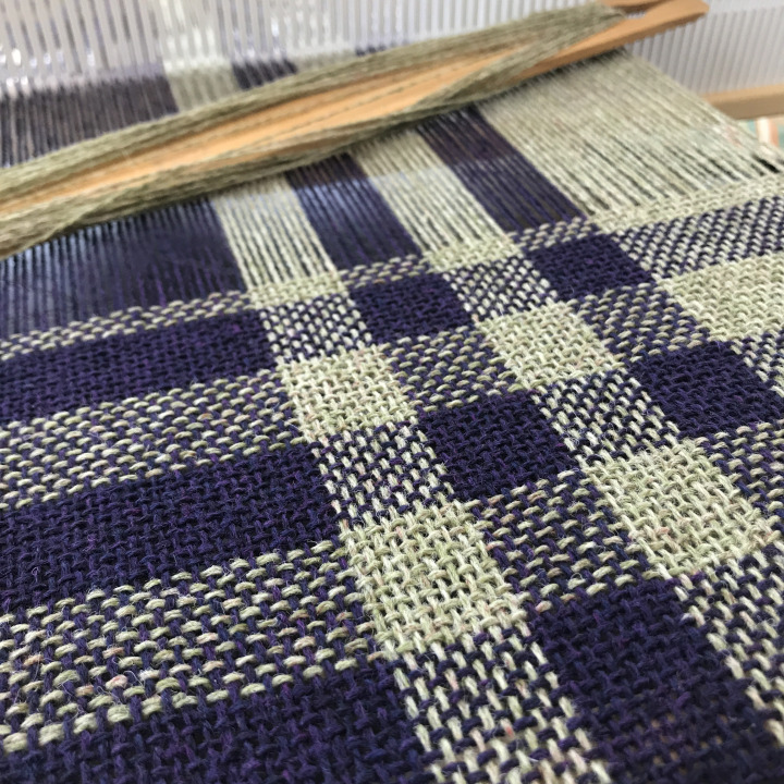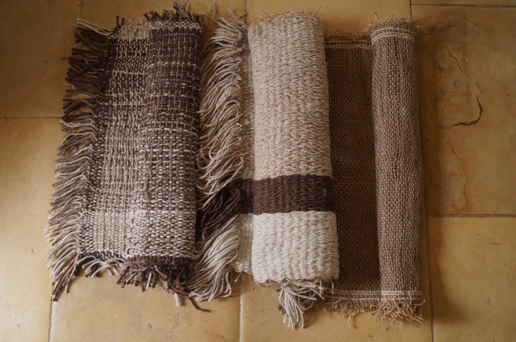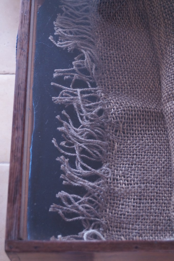 Found in an old tea crate with a horse jacket, these woollen fabric swatches appeared to be handmade. Purchased for £10 each, I took them home to check to see whether there was any information on anything similar. The fabric pattern is a plain weave, and was most likely to be made on a simple loom, something like a simple standing rug loom. These were a feature of communities with a tendency for self reliance, for their simplicity allowed for regular and repeated use without the extended periods of downtime for re-warping. The fabrics are made using tweed yarn (and twine for one piece), suggesting they’re of an origin that precedes notions of trend over function, and most likely date from around the turn of the 19th century. Synthetic dyes were in wide use in the middle of the 19th Century, as were the use of powered mechanical looms.